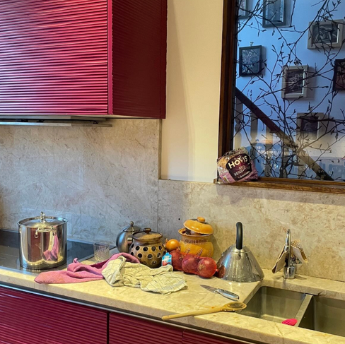 In our Waterloo kitchen project, we inherited a bold, magenta-coloured kitchen, full of quirky charm but in need of a functional and aesthetic re-think. The original overhead extractor was large and clunky, hidden inside a bulky cabinet that took up visual space and made the room feel crowded.